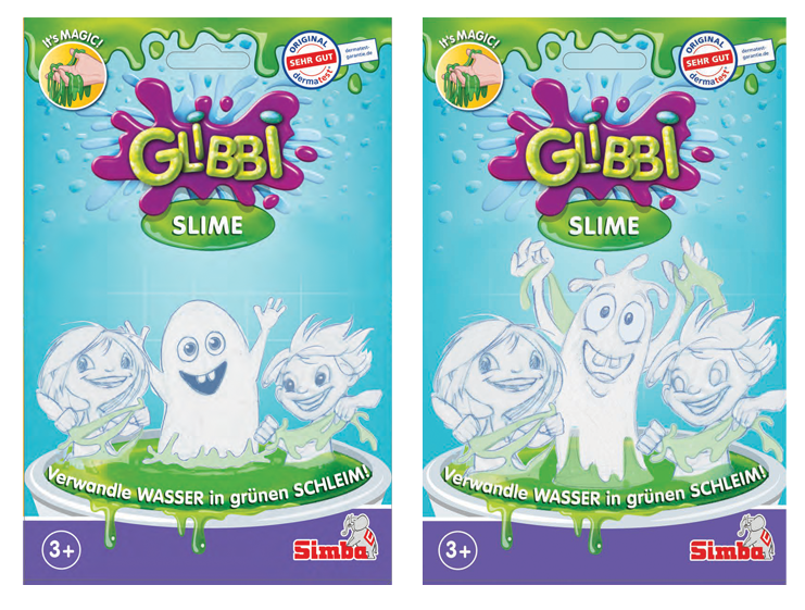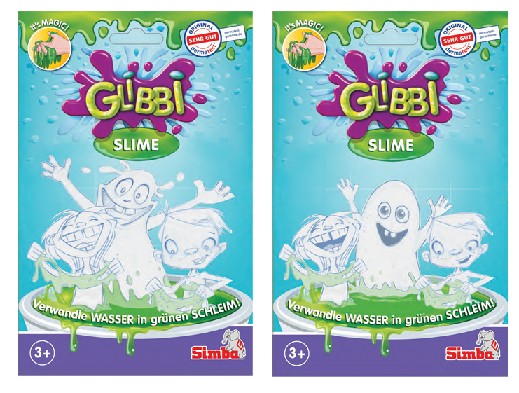 Simba Toys has a line of slime toys under the Glibbi brand. Each SKU contains unique character art, but all have a similar style. The current artwork had been used successfully for many years but Simba felt it was time to refresh the packaging with new art. We were asked to come up with some concepts that gave the characters a bit more attitude and emotion.